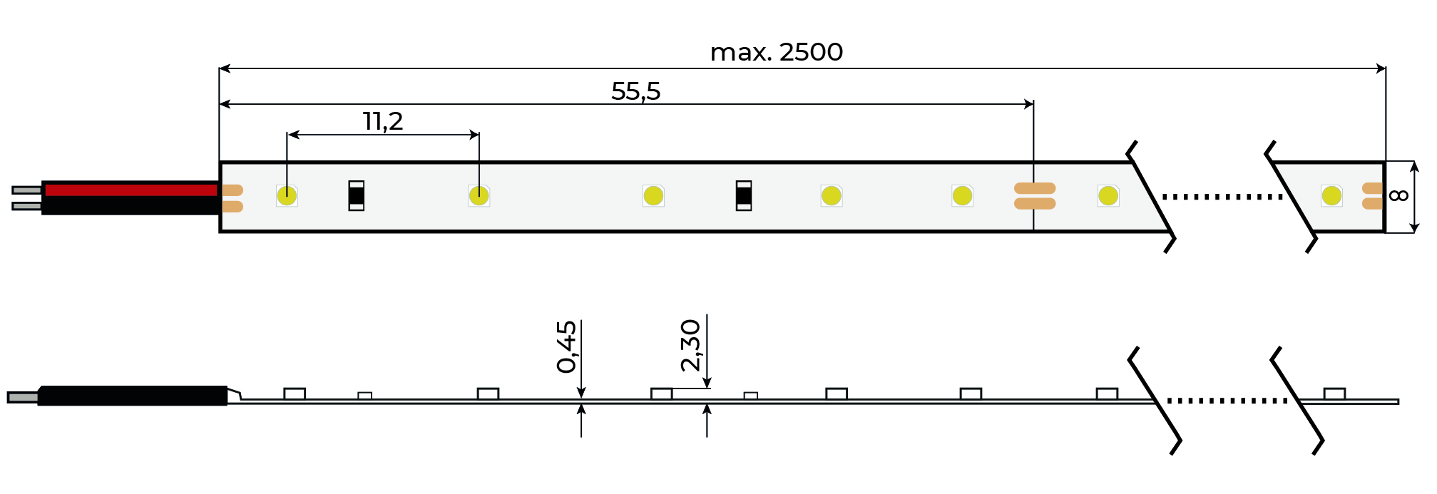 - Wärmemanagement beachten und Leuchtstreifen immer auf einem geeigneten Untergrund montieren.